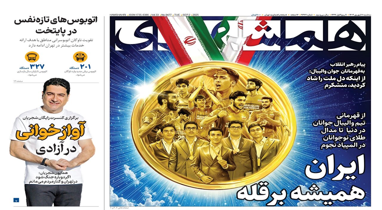 به گزارش همشهریآنلاین، مطالب این شماره و آرشیو روزنامه همشهری را همیشه می توانید در این آدرس ببینید و بخوانید: سایت روزنامه همشهری