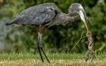 تصاویر؛ شکارچی بی‌رحم طبیعت؛ حواصیل بزرگ بچه‌تمساح را بلعید