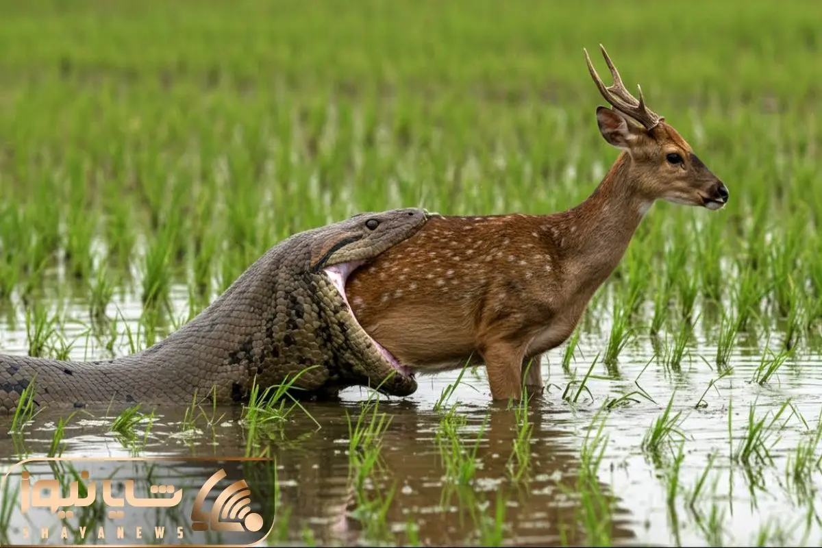 ویدیویی از شکار شدن آهو توسط مار پیتون تو شالیزار رو می بینید