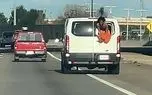 ببینید؛ آویزان شدن زندانی از پنجره خودروی انتقال زندانیان