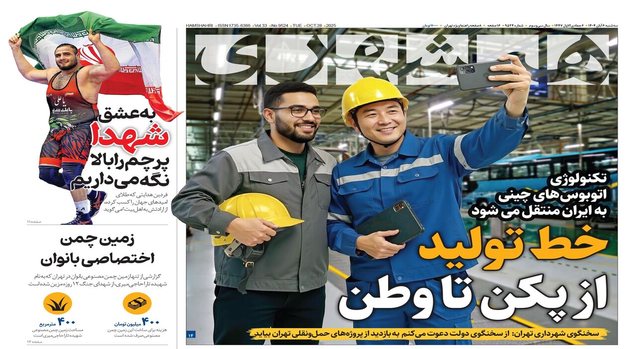 به گزارش همشهریآنلاین، مطالب این شماره و آرشیو روزنامه همشهری را همیشه می توانید در این آدرس ببینید و بخوانید: سایت روزنامه همشهری