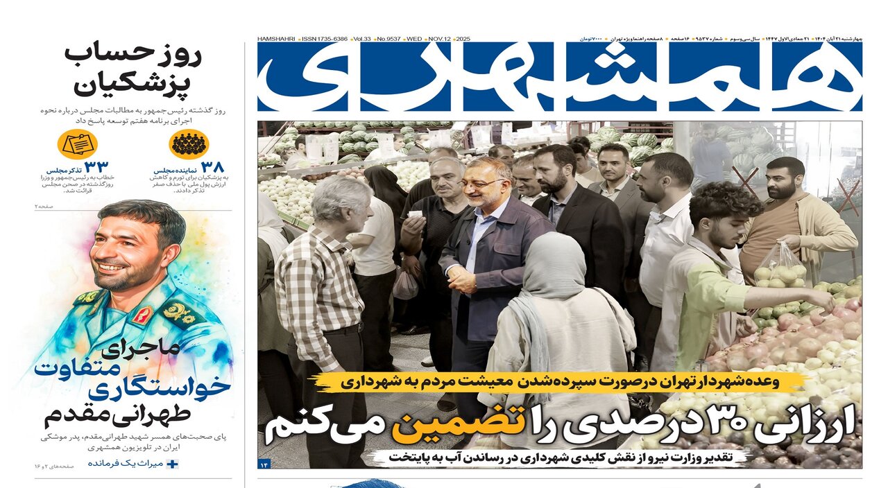 به گزارش همشهری‌آنلاین، مطالب این شماره و آرشیو روزنامه همشهری را همیشه می توانید در این آدرس ببینید و بخوانید: سایت روزنامه همشهری