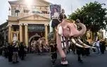 یازده فیل صورتی رنگ شده در بانکوک در بیرون کاخ بزرگ به نشانه ادای احترام به ملکه مادر فقید رژه رفتند.