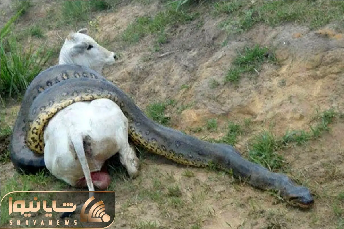 نبرد دیدنی مار آناکوندا و گاو رو ببینید وقتی مار طمع می کنه تا یک لقمه درست و بزرگ رو بخوره