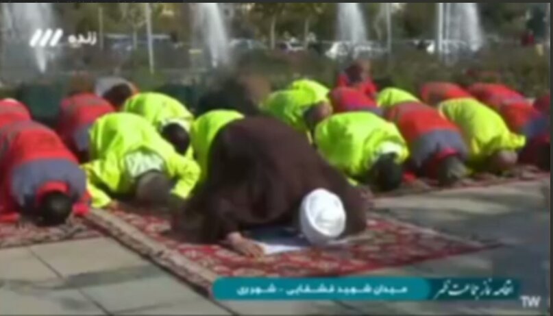 پخش زنده تصاویری از اقامه نماز جماعت پاکبانان تهرانی | ویدئو